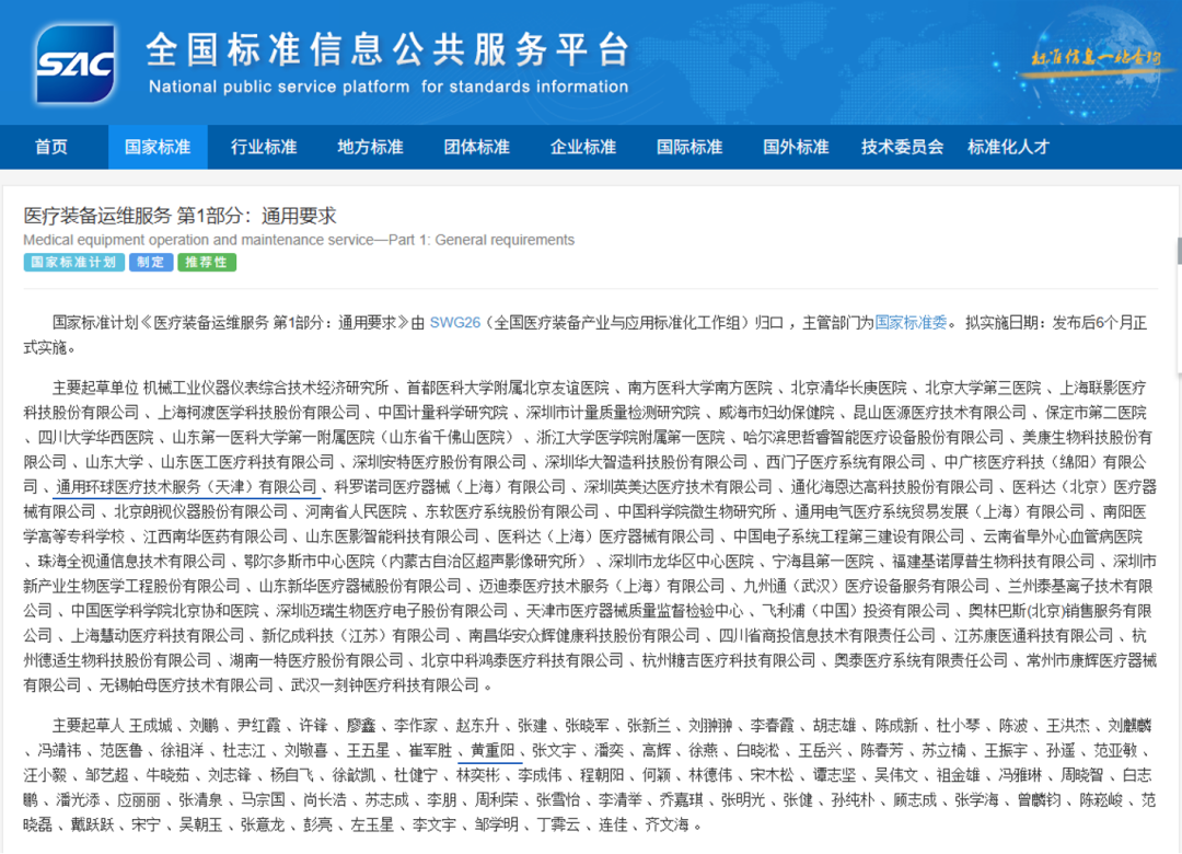 首个医疗装备运维服务国家标准发布,环球技服为行业贡献“标准力量”!