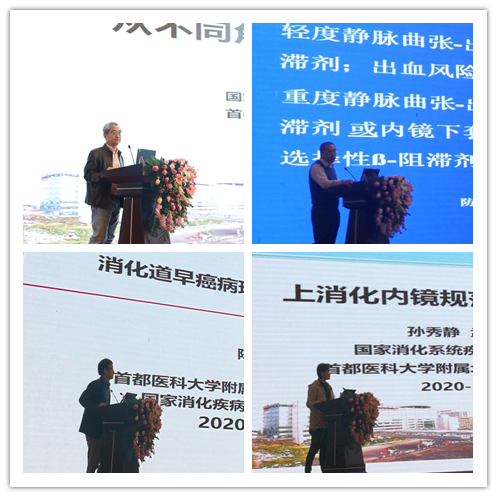 授牌仪式后,“‘友谊’消化直通车万里行-鞍山站”学术交流活动正式举行。与会专家张澍田、吴咏冬、牛应林、陈光勇教授分别围绕“从不同角度看幽门螺旋杆菌“ “食管静脉曲张的治疗方案“ “消化道早癌病理诊断问题及策略” “上消化道内镜范围留图和质量评价”等主题进行了阐述。孙秀静、魏红涛教授为参会人员进行了ESD、ERCP手术操作示范。