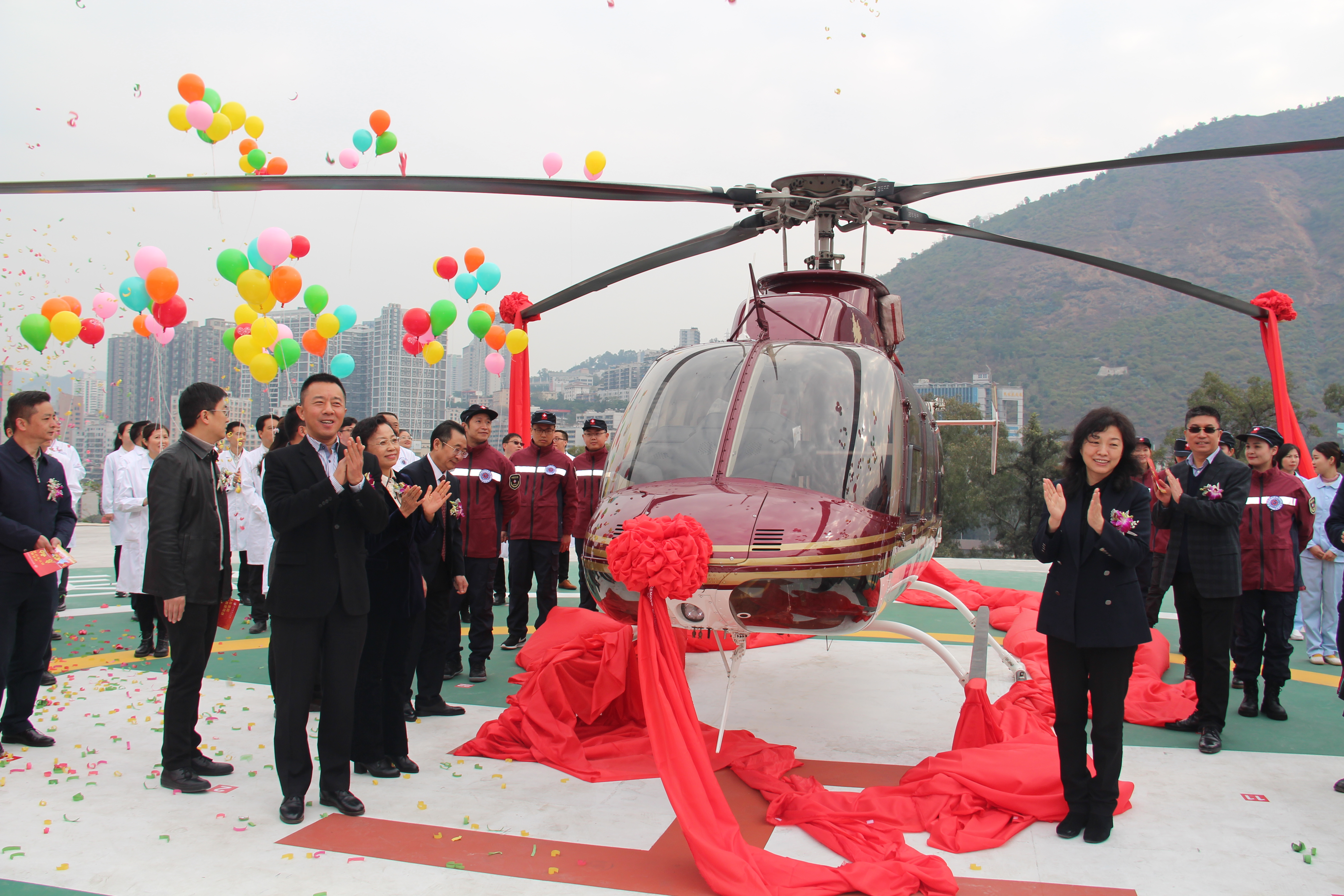攀枝花市政府领导与集团领导共同为救援直升机揭幕