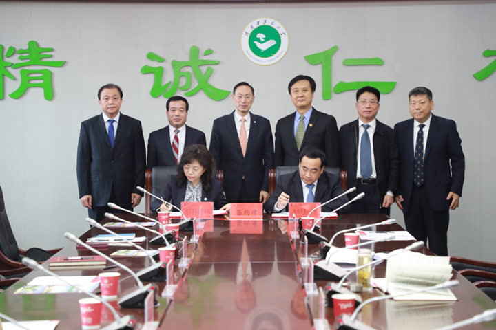 环球医疗首席执行官彭佳虹、陕西中医药大学校长孙振霖签署合作协议