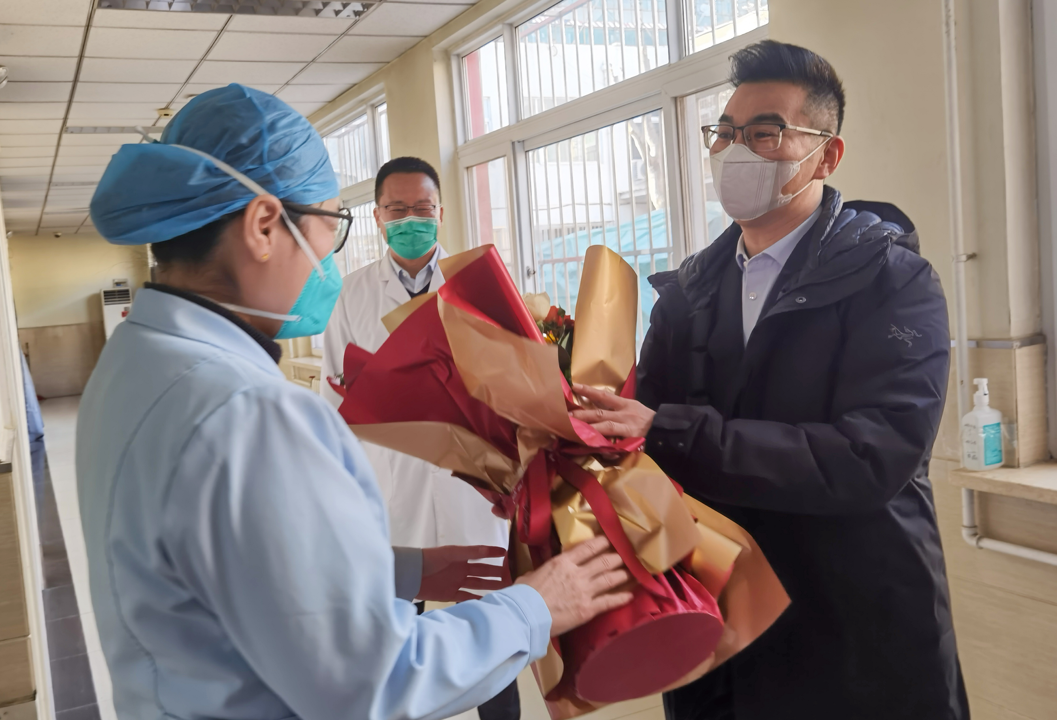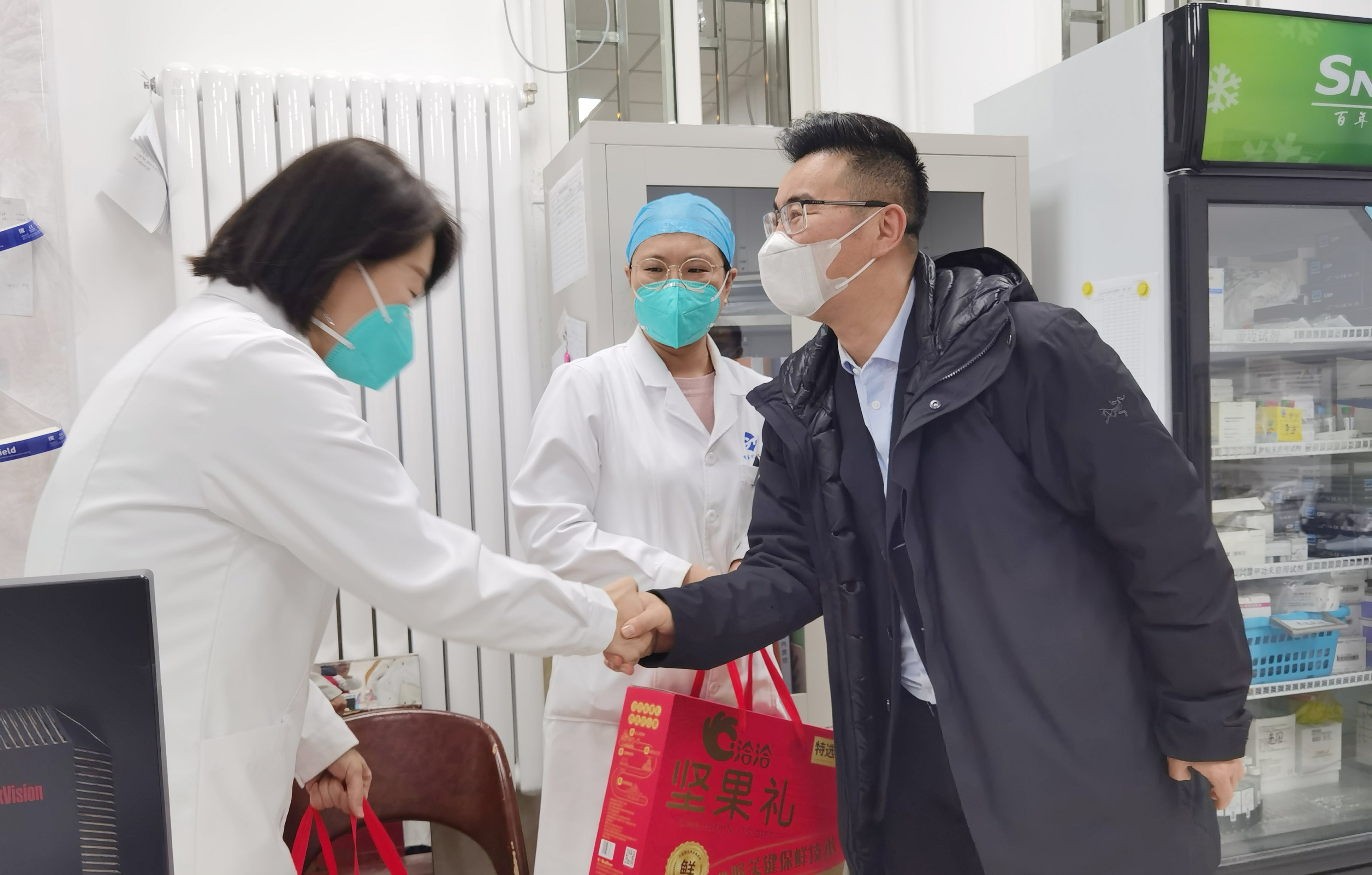 1月17日,通用技术环球医疗总经理、党委副书记王文兵一行赴北京东里医院,亲切慰问连日奋战在医疗救治一线的医务工作者。
