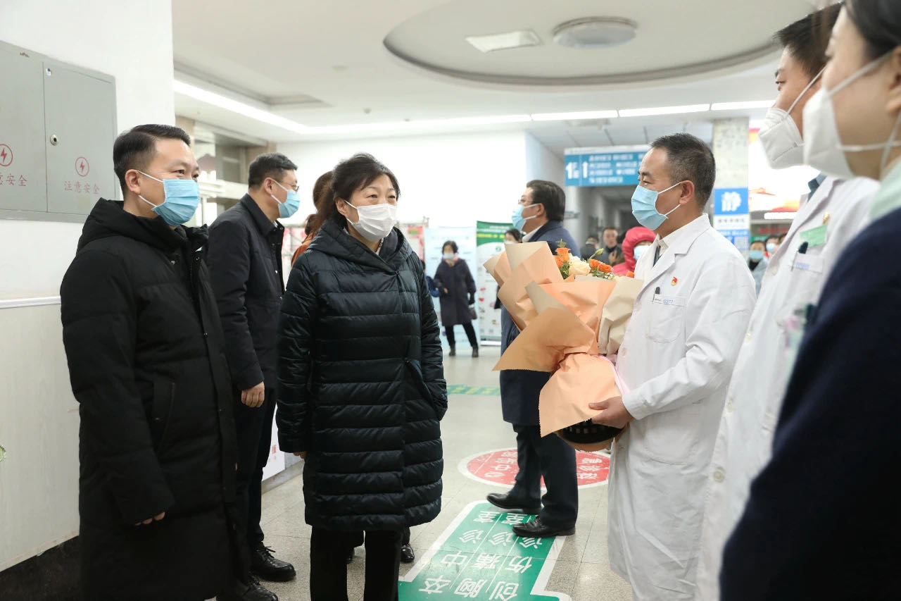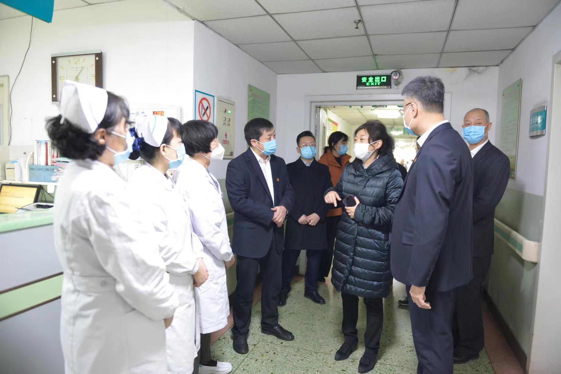 彭佳虹一行实地察看了医院院区建设,并深入呼吸与危重症医学科、骨科、急诊科、肾病医学部、重症科等看望慰问医务人员。
