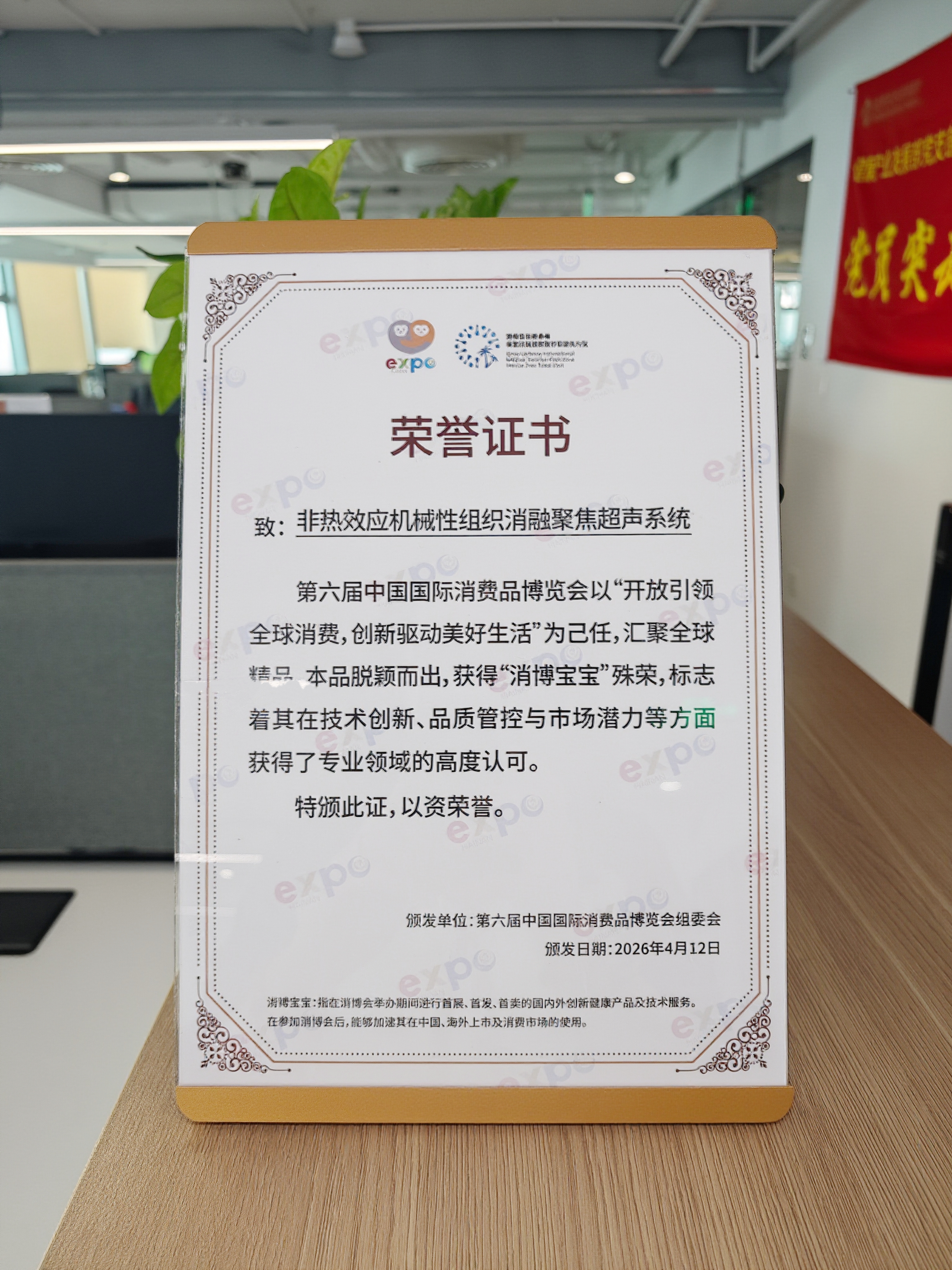 近日,第六届中国国际消费品博览会国际健康消费分展区在海南博鳌乐城国际医疗旅游先行区启幕,以“消博乐行——创新之光守康宁”为主题,汇聚全球健康消费创新成果。开幕现场,乐城分展区发布了八款依托自贸港政策优势诞生的“消博宝宝”,它们通过“全球首发”“中国首用”的形式,让国内患者和消费者率先体验全球顶尖医疗科技,覆盖了肿瘤治疗、精准诊断、慢病管理及营养健康等多个领域。其中,通用技术环球医疗引进的全球领先的非热效应机械性组织消融聚焦超声系统(Histotripsy肿瘤设备,以下简称“海声刀”),从众多参展产品中脱颖而出,成功入选 “消博宝宝” 重磅榜单。
